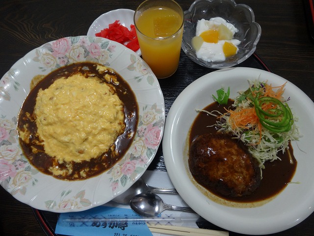 オムライスセット(デザート&コーヒーかジュース付)オムライス&ハンバーグ1,180円+消費税3%
