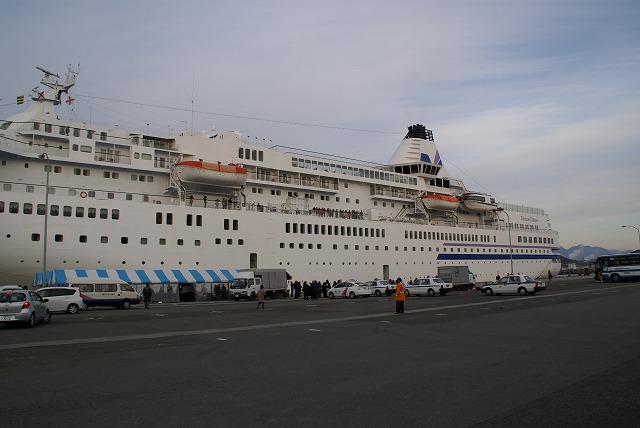 今日1月3日宮崎県日南市油津港東埠頭に午前8時豪華客船ぱしふぃっくびぃなすが入港しました