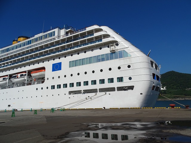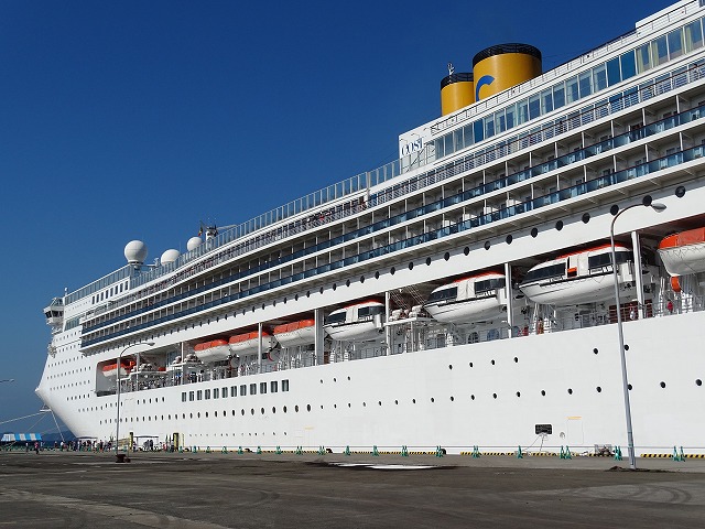 今日午前8時にコスタ・クルーズ運行会社の豪華客船コスタ・ビクトリアが日南市油津港東埠頭に寄港しました