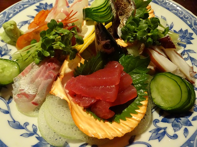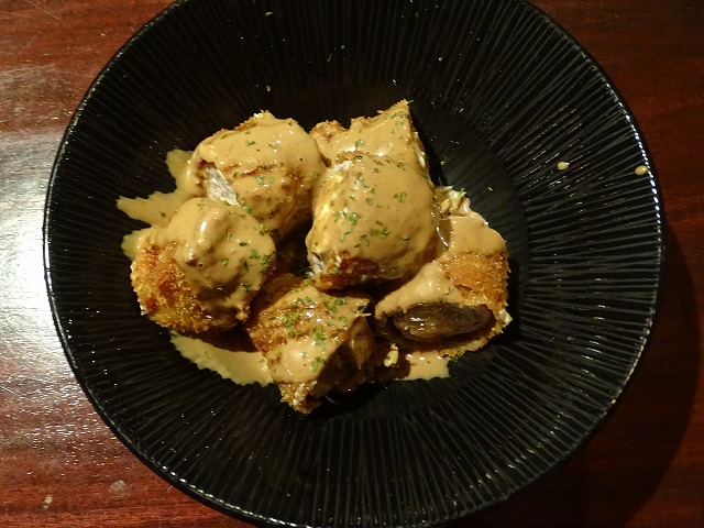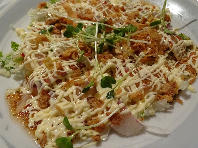 今日食べたメニューは最初にエビと野菜のマヨ炒め(税込800円)・次におまかせカルパッチョ(税込880円)・さしみ盛り合わせ(1800円)・あげ出豆腐(税込530円)・トマトチーズ焼税込420円)・京子トリカラ(税込630円)・手羽先の風味焼(税込630円)・豚肉のチ-ズ巻き揚(税込650円)・焼オニギリ税込6個で1200円)でした。※焼オニギリは2個で400円です。